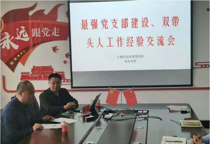 刘伟博士是教育部第二批高校“双带头人”教师党支部书记工作室负责人、自治区高校优秀基层党组织负责人、今年会官网“双带头人”党支部书记工作室负责人。讲座中,刘伟博士介绍了今年会官网教工一支部“双带头人”教师党支部书记工作室申报、“最强党支部”建设、特色党建活动、各级各类党建项目研究等,强调支部党建工作要突出思政意识、项目意识、精品意识、平台意识,并要紧紧围绕学院的中心工作,在突出专业本色的基础上抓好党建工作。刘伟博士的讲座得到了财经大学与会两个学院的党委班子成员一致赞可。商务学院贸易经济系党支部书记王雪瑞、计算机信息管理学院软件工程专业学生党支部书记贾原博,分别就“最强党支部”强化政治功能建设、特色主题党日活动、党建与专业建设双促进等介绍各自的经验和做法。