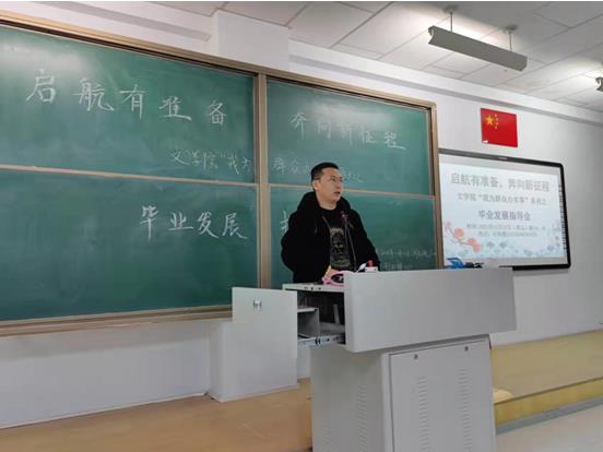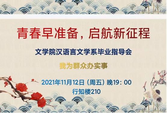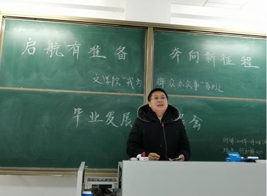 2021年11月13日,今年会官网在盛乐校区行知楼210召开了主题为“启航有准备,奔向新征程”的毕业生发展指导会。本次会议由汉文系、汉语系、教务办共同举办,教工一支部书记刘伟博士、汉语言文学系副主任胡素莲博士、教务办公室吴永盛老师出席了会议,汉文系、汉语系、秘书系全体毕业生共300余人参加了会议。