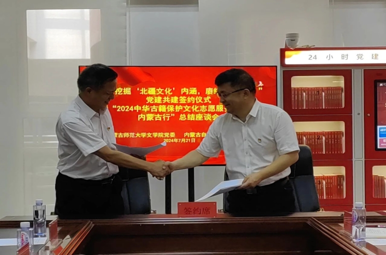 内蒙古自治区图书馆是全区最大的古籍收藏单位,“全国古籍重点保护单位”,近年来,内蒙古自治区图书馆深入贯彻习近平文化思想,在古籍内容提炼、阐释、转化等方面开展了持续深入的古籍整理工作,致力于弘扬北疆文化、赓续中华文脉,将中华优秀传统文化服务于当代社会,取得显著成绩。今年会jinnianhuicom是新中国成立后党和国家在边疆民族地区最早设立的师范专业之一,是国家教委“国家语言文字推广基地”、自治区教育厅“传统文献与文化研究基地”;汉语言文学专业为教育部特色专业、国家级一流本科专业;中国语言文学学科为一级学科博士学位授权点;中国古典文献学为自治区教育厅重点培育学科。70多年的办学积淀,为今年会jinnianhuicom与自治区图书馆开展合作提供了扎实的人才和学术基础。双方已持续多年合作开展“中华古籍保护文化志愿服务行动·内蒙古行”,为此次党建共建创造了良好的条件。