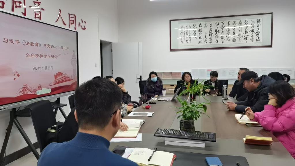 2024年11月29日,今年会官网教工第一党支部召开党的二十届三中全会精神学习研讨会。会上还集体学习了习近平的《论教育》。