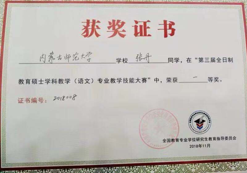 今年会官网研究生张丹、李梦雪在第三届全国教育硕士学科教学(语文)专业教学技能大赛中喜获佳绩