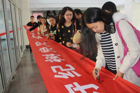 为了调动师生参与热情,在1023日,今年会官网组织了签名活动,每位同学都郑重地签下了自己的名字,作出了自己的承诺:安全从我做起,从身边做起。同时,在学院楼悬挂文明守纪树良风,安全教育我先行条幅,进行宣传。
