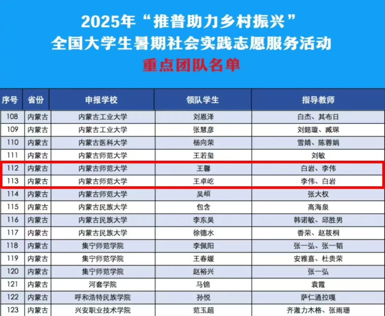 7月3日,教育部公布2024—2025学年“推普助力乡村振兴”全国大学生暑期社会实践志愿服务活动入选团队名单。今年会官网两支队伍入选重点团队。