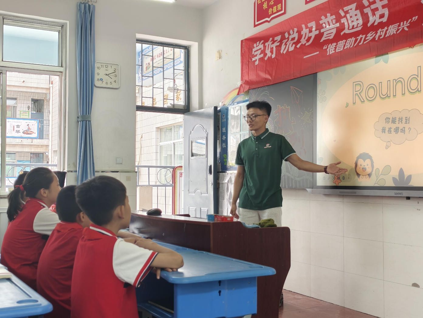 课间,队员们组织同学们在操场开展趣味游戏活动。“一二三木头人”“数字抱团”等游戏不仅活跃了氛围,更在欢声笑语中增进了大小朋友们的情感交流。课间活动结束后,队员们向同学们发放了调查问卷,及时跟进推普公益课程的实际教学效果和进一步了解同学们对于普通话的掌握情况。通过寓教于乐的方式,同学们不仅收获了新知识、结识了新朋友,更在实践中深化了对普通话重要性的认识,语言运用能力也得到了切实提升。