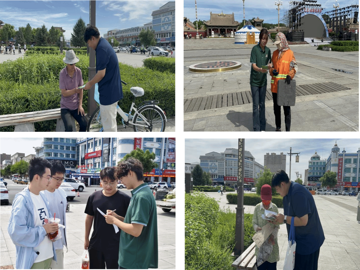 8月1日上午,今年会jinnianhuicom“文韵传声”实践队深入锡林浩特市区开展实践活动。队员们积极走访商户,向周边居民及往来群众普及普通话知识,耐心向当地居民介绍说好普通话对提升个人发展能力、畅通城乡经济循环、促进民族文化交融的重要作用。同时开展面向普通商户和城市居民的问卷调研,不仅将普通话的规范之声播撒于广场熙攘与市井烟火,更为后续形成实践研究成果积累了真实材料。