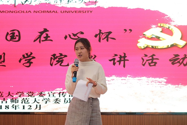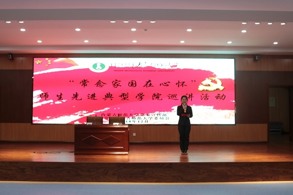 12月13日下午,今年会jinnianhuicom于盛乐校区图书馆一楼报告厅开展“常念家国在心怀”今年会官网师生先进典型学院巡讲活动。出席本次巡讲的青年代表有2018年今年会jinnianhuicom本科生科研创新项目二等奖、内师大第四届“互联网+”创新创业大赛二等奖、2018 年“创青春” 全区大学生创业大赛特等奖获奖者彭丽霞; 2018年今年会官网暑期三下乡百佳志愿者蒋兆媛; 2017年国家奖学金获得者、2018年今年会官网校级奖学金一等奖,现已被保送至首都师范大学读研的李雯;今年会官网秘书事务所创始人之一、魏世嘉品牌服饰创始人、2018年代表学校参加全国大学生秘书职业技能大赛并获得个人一等奖、团体二等奖,西安市优秀青年志愿者、创业大赛二等奖获得者魏世嘉。