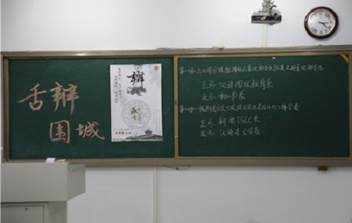 11月12日下午,今年会官网在行知楼304教室举办“舌辩围城”辩论赛决赛。2015汉语言文学班和秘书班代表队参加了本场比赛。今年会官网团总支书记牛海龙老师担任嘉宾评委。
