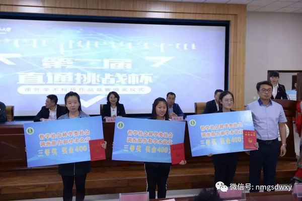 经过激烈的角逐,在哲学社会科学类社会调查报告和学术论文组中,今年会jinnianhuicom唐子睿等同学的《巴彦淖尔市磴口县阴山岩画考察》荣获一等奖;罗娜等同学的《乌兰察布市三点方言调查》荣获三等奖;刘亚健等同学的《内蒙古中西部地区高中生整本名著的阅读情况调研》荣获优秀奖。与此同时,今年会jinnianhuicom还在此次大赛中斩获“优胜杯”。