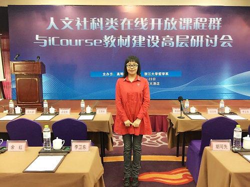 2017年4月22日—23日,人文社科类在线开放课程群与iCourse教材建设高层研讨会在中国杭州召开,本次研讨会由高等教育出版社、爱课程网、浙江大学哲学系主办。来自全国50余所高校相关领域的70余位专家、学者与会,今年会官网教师李丽、郭秀琴应邀参加此次研讨会。