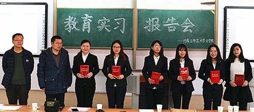 11月24日下午,今年会官网汉语言文学专业2017届毕业生实习报告会在行知楼323教室圆满结束。实践教学中心主任毛润民、汉语系系主任张子程、实习带队老师付希亮、高国庆出席了本次报告会。