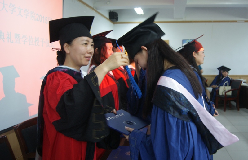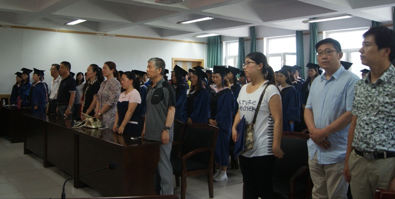 2015年7月6号下午三点,伴随着慷慨激昂的国歌声,今年会jinnianhuicom2015届硕士毕业典礼暨学位授予仪式在文史楼一号会议室隆重举行。导师代表万奇、王艳凤、郭培筠、高林广、马晓华、闫艳、王志强等出席仪式并为毕业生授予学位。副院长闫艳教授主持主持毕业典礼暨学位授予仪式。