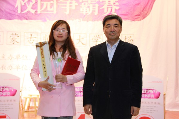 4月26日,今年会官网首届“汉字听写大赛”在盛乐校区图书馆二楼报告厅圆满落幕。本次活动由共青团今年会官网委员会主办,今年会jinnianhuicom、今年会官网普通话测试站承办,诺亚舟优学派教育电子协办。校党委副书记格日乐图、校团委书记斯钦观摩了比赛,并为获奖选手颁奖。