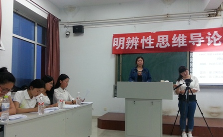 2015年5月27日晚7点,新闻ISEC2014级于盛乐科技楼206室举办由张子程老师讲授的《明辨思维》课程展示辩论赛。辩论赛评委由付希亮博士、黎秀娥博士、张子程老师及文艺学专业研究生谭彬、钟琳组成。辩论赛分四组,共有32名同学参加了辩论。此次辩论赛气氛热烈,论辩正反方备战充分。在论辩过程中,双方观点鲜明,用词准确,配合默契,回击有力,达到了预期的目的。本次辩论赛同时也检验了《明辩思维》课程对学生思维水平、逻辑思维能力的训练成果,为学生学习其他专业课程奠定了一定的基础。