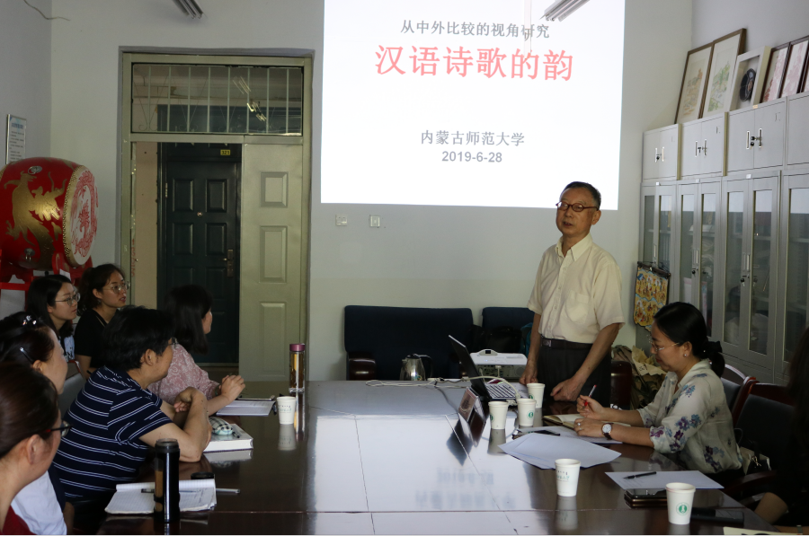2019年6月28日,著名语言学家、音韵学家鲁国尧教授莅临今年会官网,围绕“汉语诗歌的韵”这一主题做了专场学术讲座。讲座从中外比较的视角深入细致地解析汉语诗歌的韵。讲座由闫艳院长主持,今年会官网中国古典文献学、汉语言文字学、语言学及应用语言学的师生聆听了此次讲座。