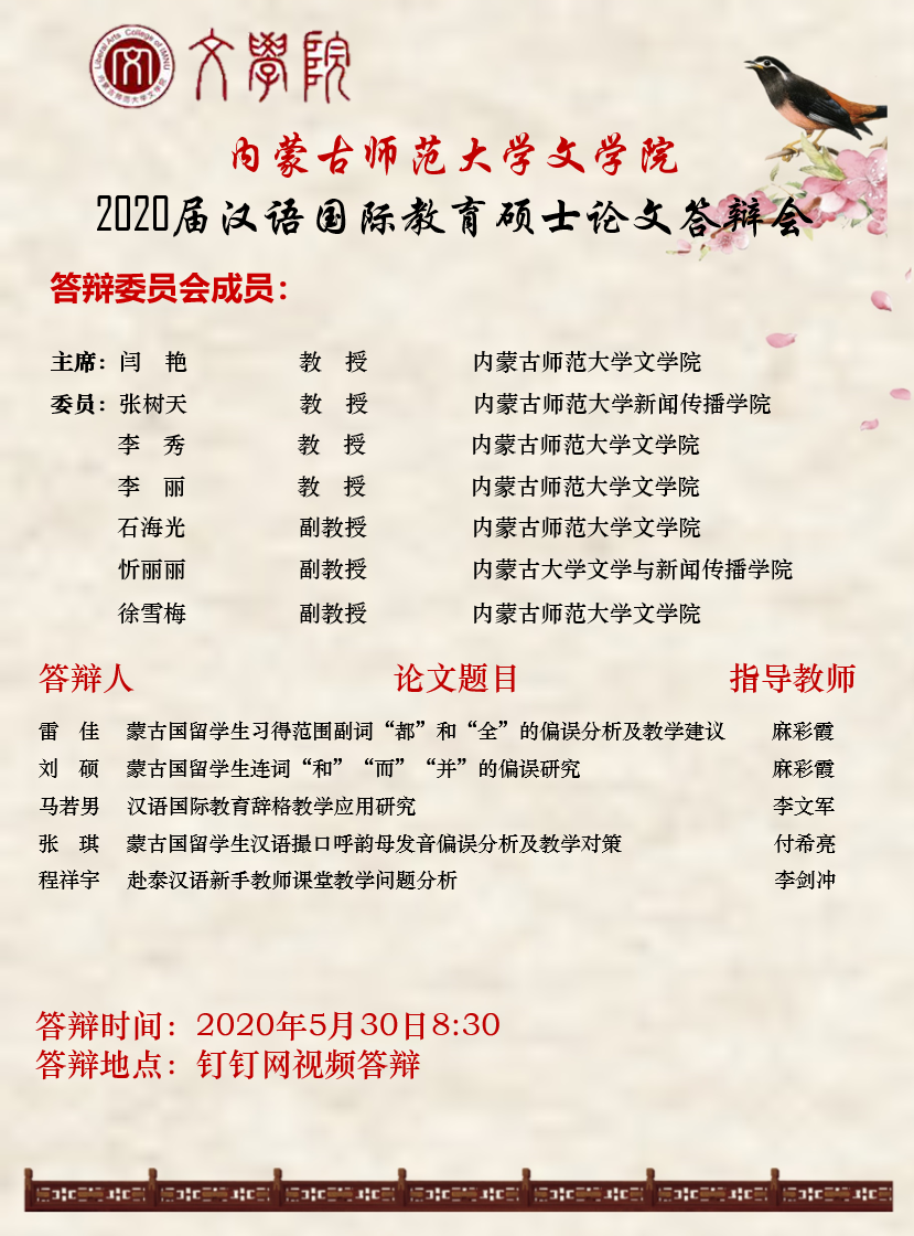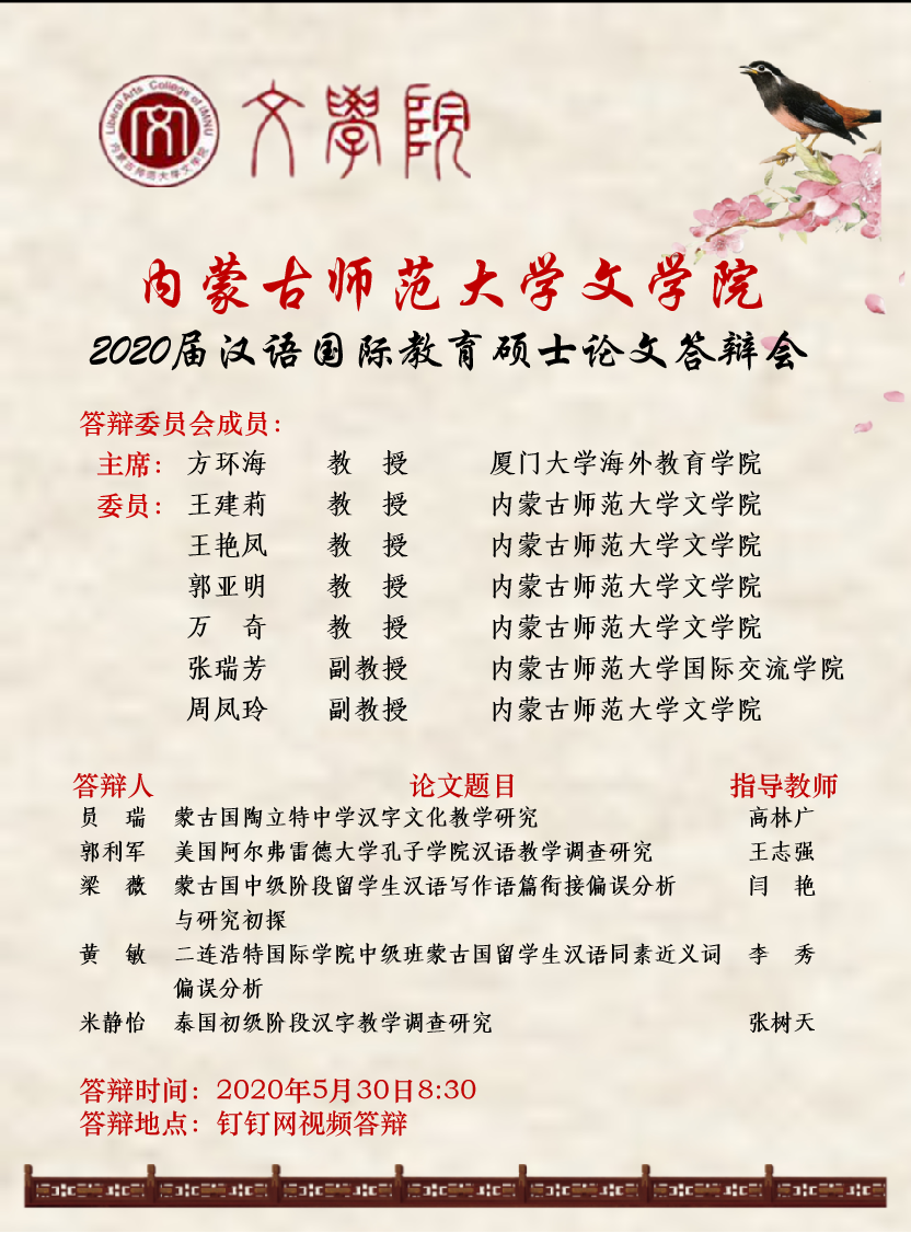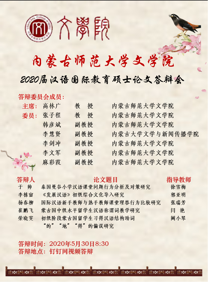 今年会jinnianhuicom2020届汉语国际教育硕士论文答辩会宣传海报