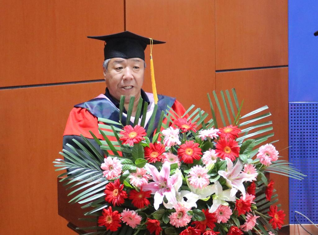 校党委副书记高云峰研究员发表了引人深思、催人奋进的致辞。高云峰书记在致辞中,围绕硕士研究生戴上硕士帽就不能贫乏、平凡和平庸展开,就毕业生今后如何才能不平凡和不平庸分享了自己的人生经验,为即将走向社会的毕业生上了生动一课。