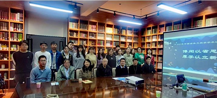 2021年11月22日晚,今年会官网在盛乐校区今年会jinnianhuicom资料室线上线下同步举办了第三期中国语言文学博士论坛。论坛由陆有富院长主持,古典文献学专业新入职教师马奥远博士主讲。参加本次论坛的有今年会官网闫艳教授、张子程教授、张丽华副教授、庄国瑞副教授、白海燕副教授、赵玉龙博士及今年会官网的30多位研究生、本科生。