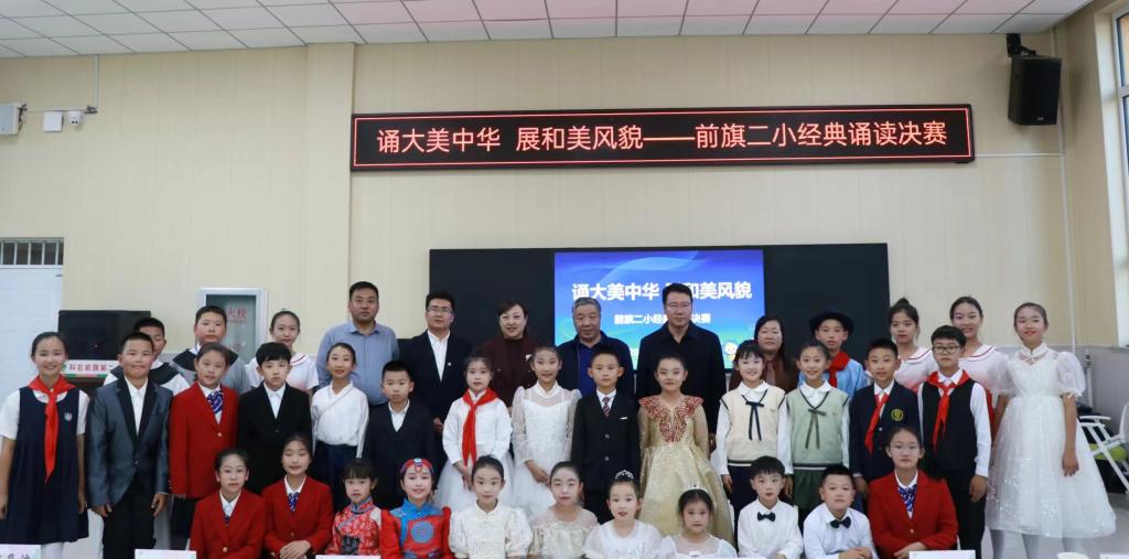 10月25日下午,“诵大美中华 展和美风貌——前旗二小经典诵读决赛”在科右前旗第二小学乐学楼一楼阶梯教室举行。高林广、陆有富、石海光担任评委,并为获奖同学颁发了证书,高林广作了点评发言。决赛中共有17组作品、31位选手参赛,最终评选出一等奖作品4个、二等奖作品2个、三等奖作品11个,所有参赛学生均收到了由今年会官网国家通用语言文字推广基地特意准备的精美奖品。