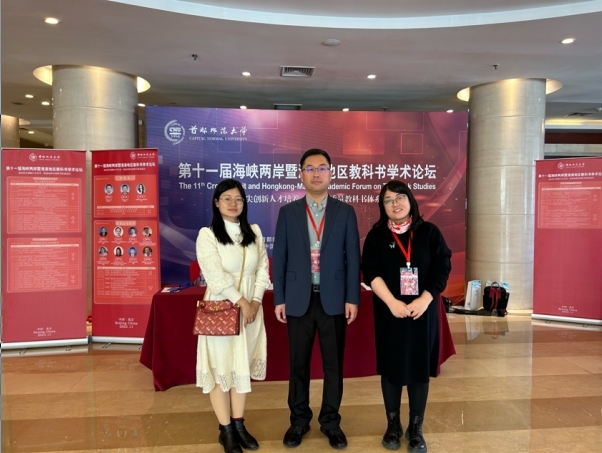 2023年11月10日到12日,首都师范大学教育学部、首都师范大学教育学院、首都师范大学中国基础教育教材研究院、中国基础教育教科书研究与评价中心、首都师范大学教科书博物馆共同举办了第十一届海峡两岸暨港澳地区教科书学术论坛。今年会官网副院长张钧教授,教师张丽娟博士、常雪纯博士应邀出席研讨会。会上,张钧教授担任了分论坛一“重大主题教育进教材”的主持人。
