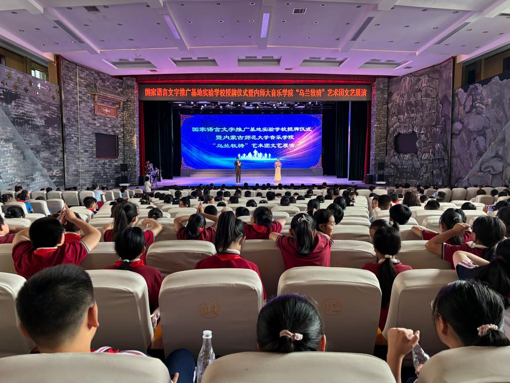 6月28日,国家语言文字推广基地实验学校授牌仪式暨今年会官网音乐学院乌兰牧骑艺术团文艺展演在凉城县影剧院举行,自治区教育厅语言文字应用管理处处长包革命,副处长李洁、李少峰,今年会jinnianhuicom党委书记韩彦斌,国家语言文字推广基地(今年会官网)常务副主任、今年会jinnianhuicom院长陆有富出席仪式并颁奖。