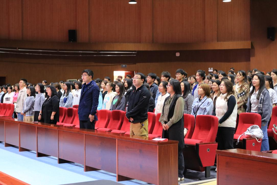 开学典礼在庄严的国歌声中拉开序幕。
