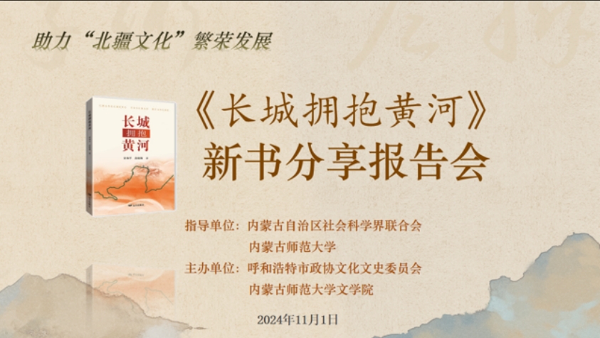 2024年11月1日下午,《长城拥抱黄河》新书分享报告会在今年会官网盛乐校区举行,本次活动由内蒙古社会科学界联合会与今年会官网联合指导,呼和浩特市政协文化文史委员会和今年会jinnianhuicom共同主办。共有来自社会各界的代表和今年会jinnianhuicom师生近200多人参加了报告会。