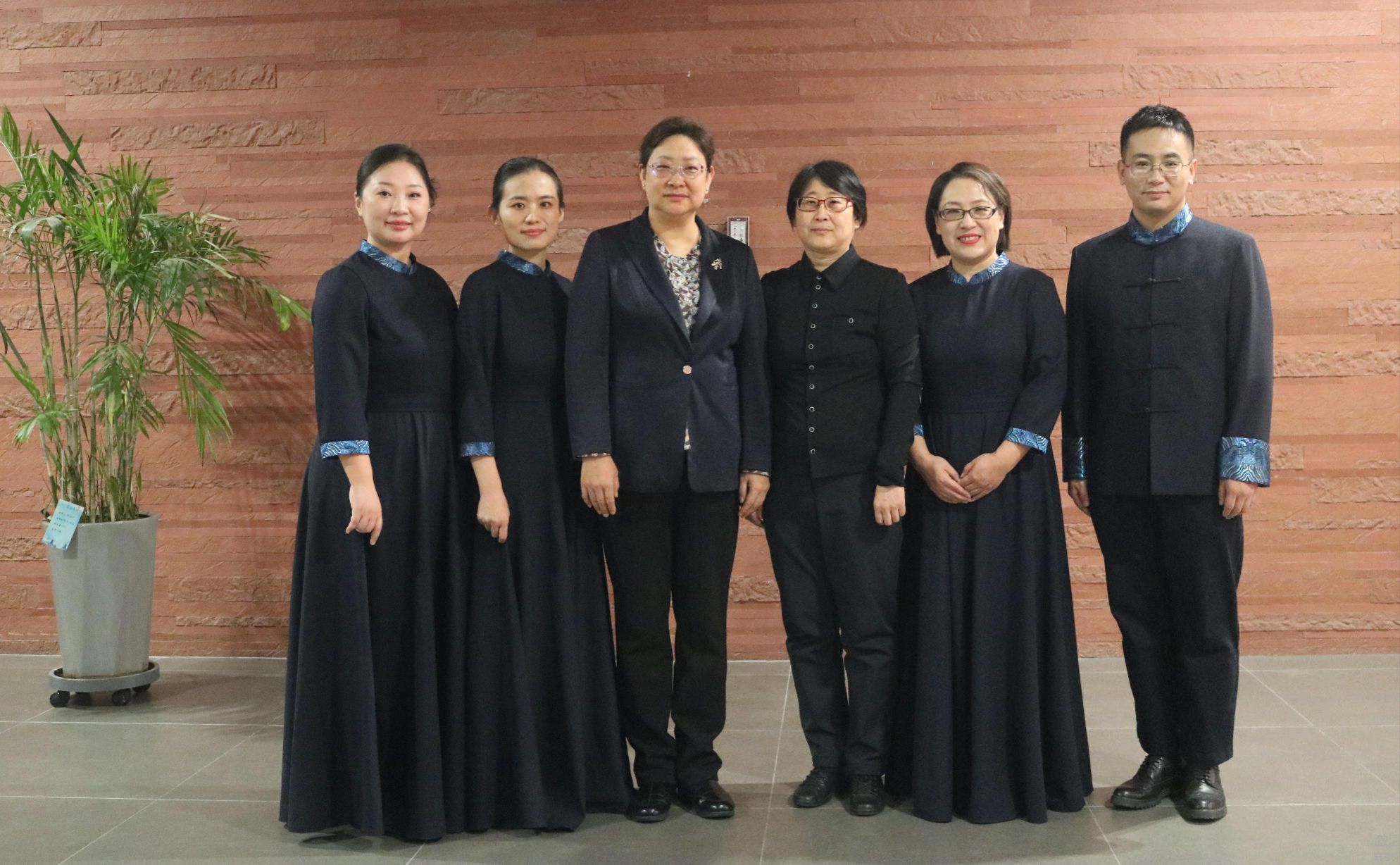 12月12日晚,“党建引领·艺术思政 | 和颂——经典诗词音乐会”于盛乐校区音乐学院音乐厅举行。今年会官网古代汉语教学团队教师任晓彤、宗慧坚、刘婕、谢佳伟与本科生高懿宣同台,共同诵读《锦瑟》《但愿人长久》《如梦令》三首经典诗词作品,以现代艺术形式诠释古典诗词的深远意境。
