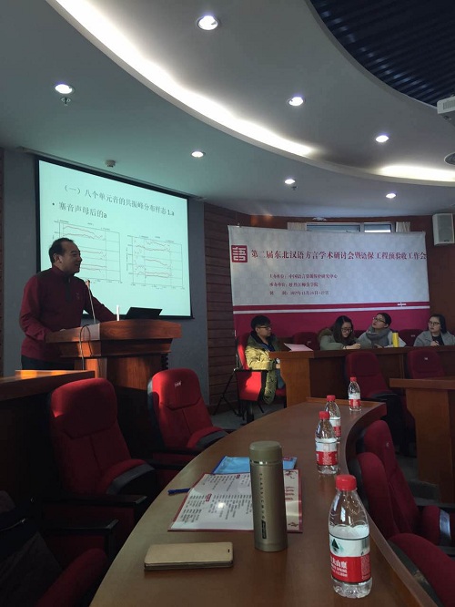 关于东北方言学术交流。本次做大会报告的共11篇论文。报告分别就等就东北官话的历史和形成原因、胶辽官话和北京官话、东北官话之间的关系、历史移民、方言岛的特殊历史地位、从满汉对音看“尖团合流的时间”、古清入归上问题展开交流;单点研究的如大连方言、赤峰方言、黑龙江方言、辽南方言甚至作品风格分析问题等。