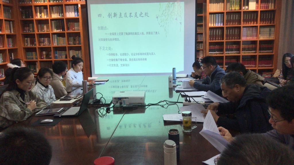 本次学术沙龙活动中共有6位研究生提交论文并做了学术发言,分别是:闫禾《刘克庄艺术辩证法初探》、张瑶《唐诗中的西王母写叙》、姜玲《“三偷说”视角下的苏轼对陶渊明之接受》、樊静《北方少数民族创作的元散曲及其民族特质融渗研究》、刘春娜《唐人对陶渊明的批评与接受》、王玥《<花间集>涉香词艺术韵味初探》。除此之外,二年级闫禾同学还分享介绍了自己的学习经验,三年级李林峰同学介绍了毕业论文写作的经验心得。
