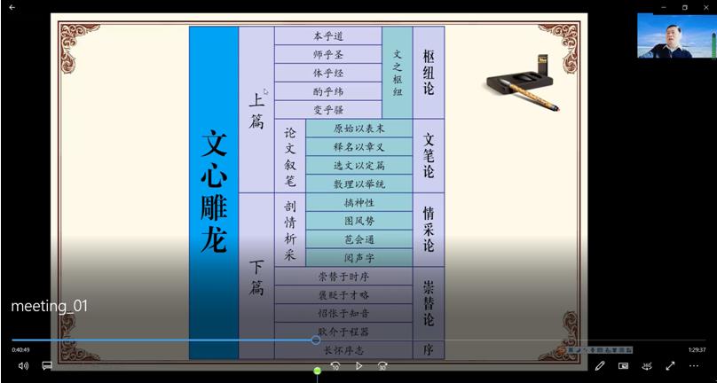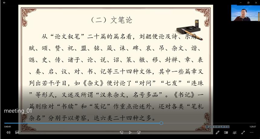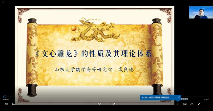 2022年5月15日下午,今年会官网邀请中国《文心雕龙》学会副会长、山东大学儒学高等研究院教授、博士生导师戚良德教授作了题为 “《文心雕龙》的性质及其理论体系”的学术讲座。讲座在腾讯会议平台举办,由文艺学点位负责人万奇教授主持,白建忠教授作评议人。