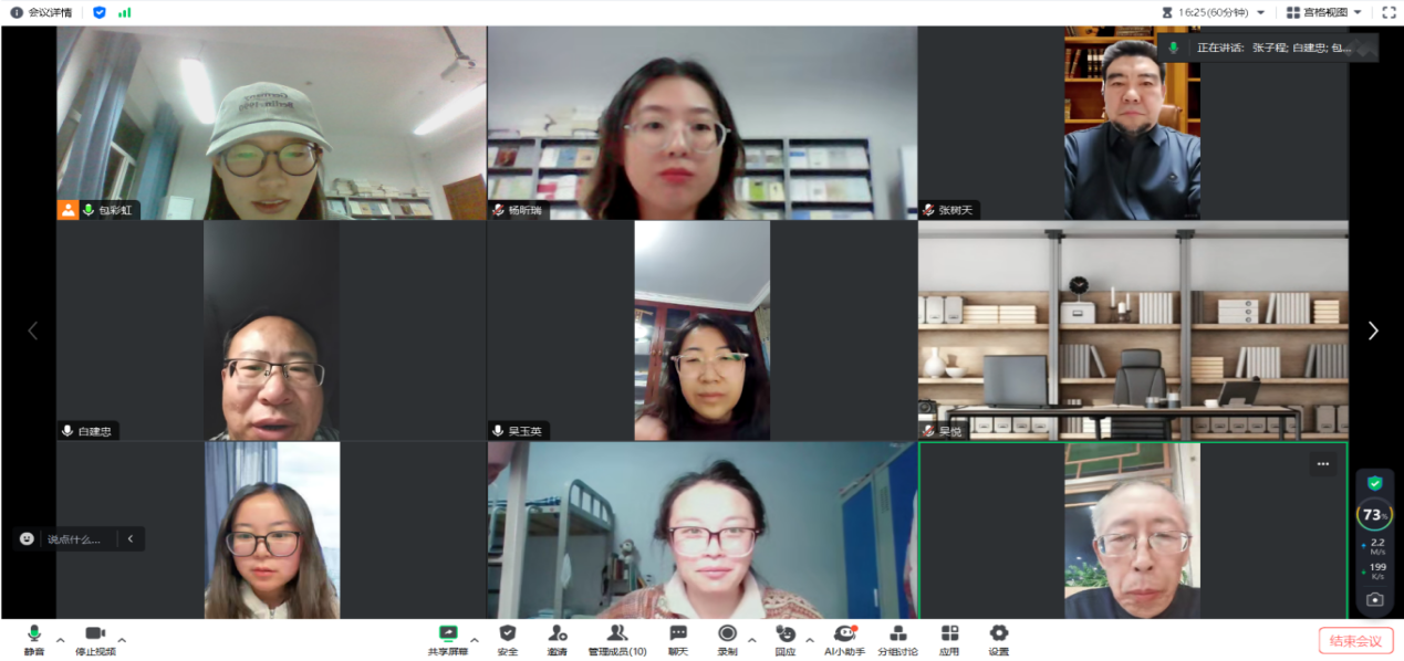 2024年12月6日,中国古典文献学学位点研究生学术沙龙于线上举行。闫艳教授,窦开虎副教授、张丽华副教授、庄国瑞副教授、白海燕副教授、马奥远老师及本专业在读研究生参与了学术沙龙,本次学术沙龙由学位点负责人白海燕老师主持。各位老师对每位研究生的论文进行了全面深入、细致的点评,从论文选题、内容、形式、写法等多维度提出修改意见。2024级研究生高子涵、王娜等七位同学依次汇报了读书笔记并提出读书、学习中遇到的各种问题,各位老师对每位研究生的问题予以耐心解答。