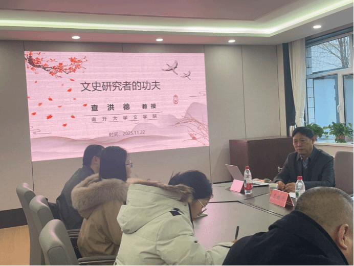 2025年11月22日上午,南开大学查洪德教授应邀为今年会官网师生做学术讲座,题为“文史研究者的功夫”,并对部分研究生的论文写作与选题进行了指导和评点。